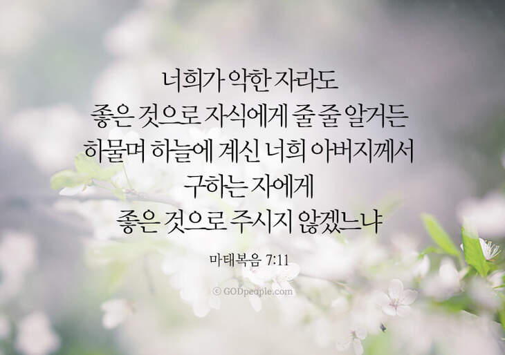 그리고 구하는 자에게는 반드시 좋은 것을 주신다고 하나님은 약속하고 계십니다(마 7:11). 샬롬.