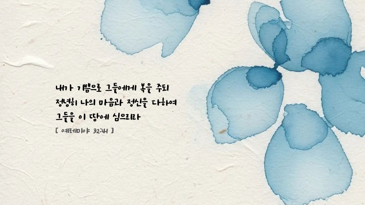 "내가 기쁨으로 그들에게 복을 주되 정녕히 나의 마음과 정신을 다하여 그들을 이 땅에 심으리라" (렘 32:41)