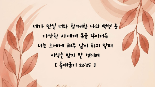 2. 하나님은 돈을 빌려주거나 빌리는 것도 인정하십니다(출 22:25).