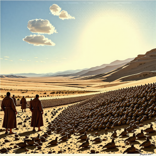 광야 생활 중 이스라엘은 만나에 염증을 느끼고 고기를 먹고 싶다고 모세에게 원망합니다.