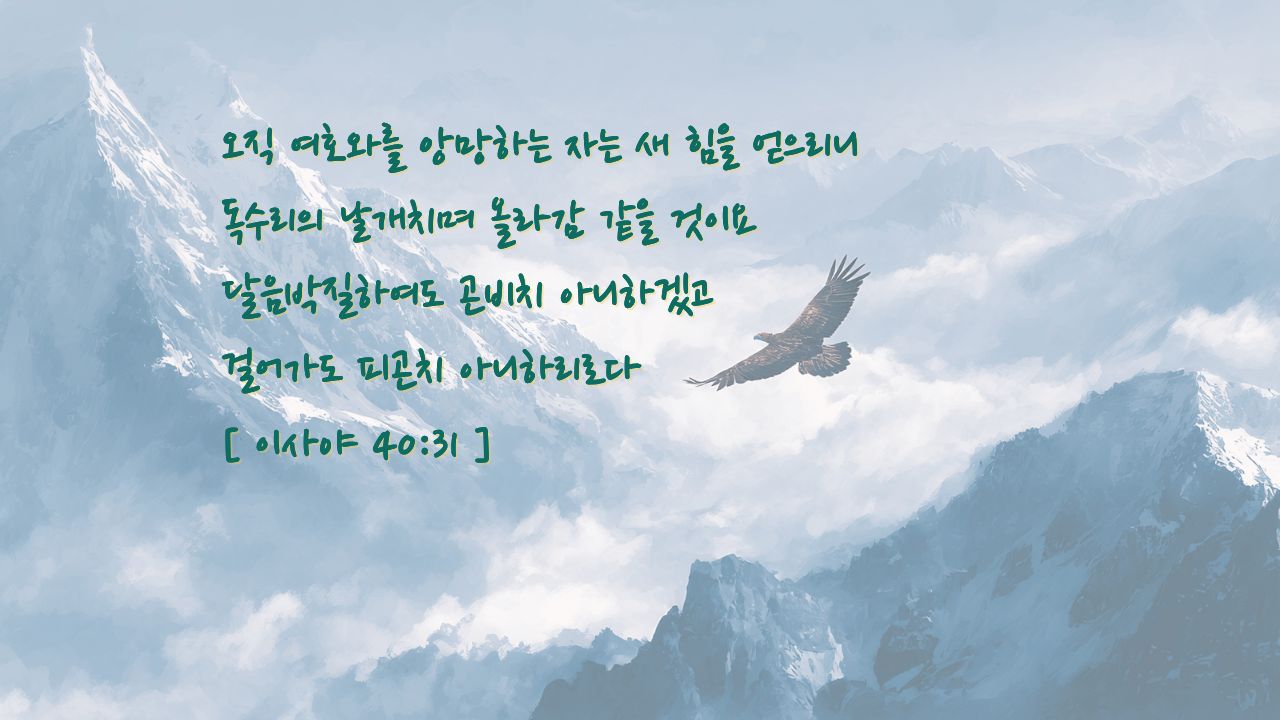 독수리에게 폭풍은 창공을 향해 높이 날 수 있다는 소망이고 비상할 수 있는 기회입니다. 샬롬