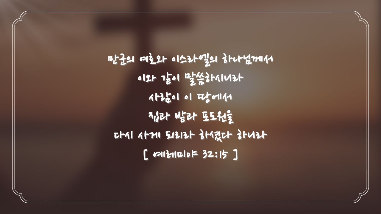 왜냐하면 전쟁으로 나라가 망하는 것이 끝이 아니라, 반드시 네가 산 땅은 네 소유가 될 날이 온다고 하는 회복을 하나님께서 말씀하셨기 때문입니다.