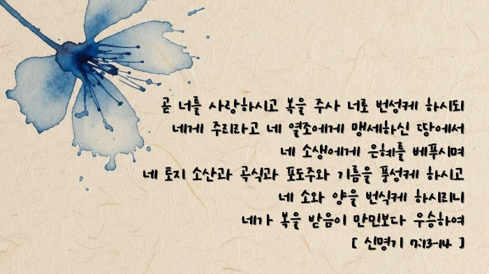 셋째로, 주의 백성은 물질의 풍성한 복을 받습니다. "네 토지 소산과 곡식과 포도주와 기름을 풍성하게 하시고 네 소와 양을 번식하게 하시리"라는 말씀과 같이 주님의 백성들은 현재 살고 있는 땅에서 큰 복을 누릴 것이고, 경영하는 사업도 번창할 것입니다.