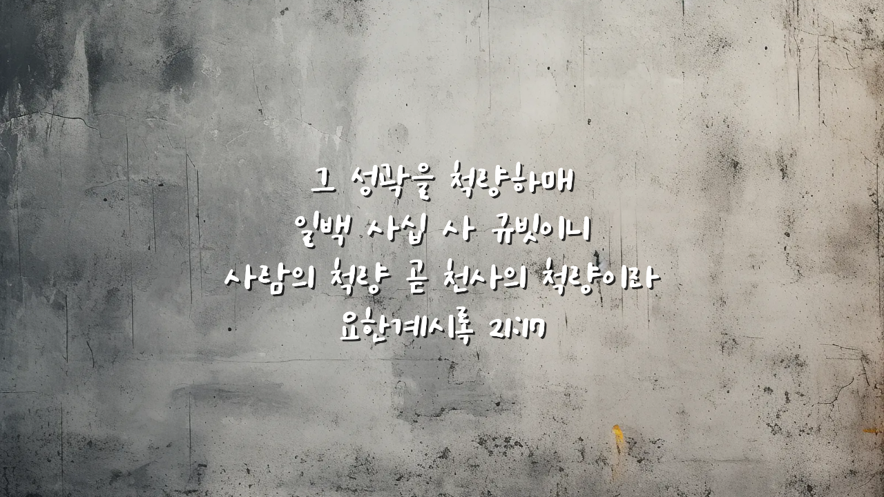 하나님께서 인을 치는 사람에게는 총명과 지혜를 주시고, 하나님의 신비로운 경험과 함께 물질의 복까지 더하여 주십니다. 하나님의 긍휼로 예루살렘 성벽의 높이를 완공하는 144규빗의 인침받은 자들은 마지막까지 하나님의 긍휼 속에서 쌓아 놓으신 은총의 삶을 누리며 살아가게 됩니다. 샬롬