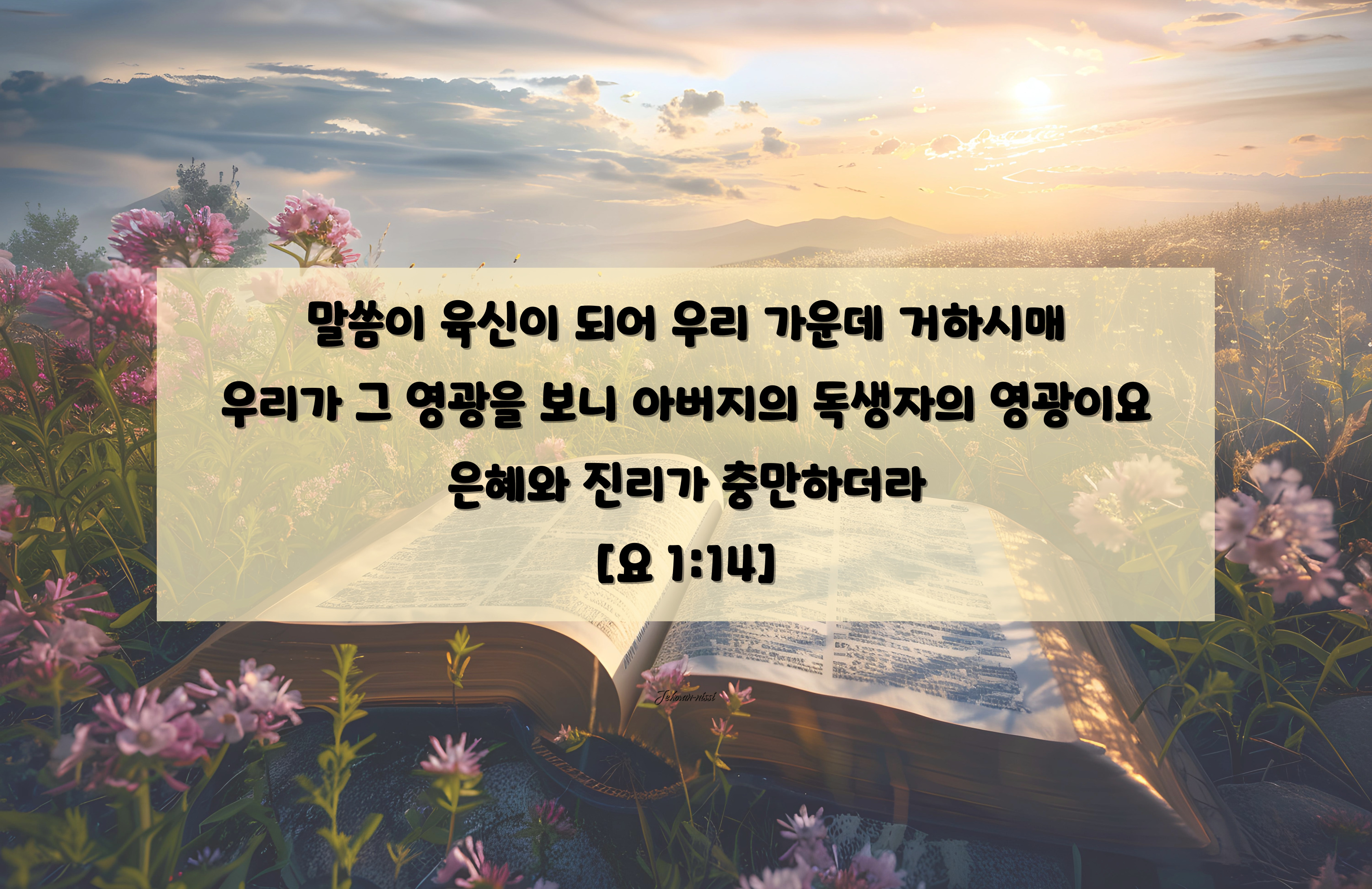 말씀이 육신이 되어 우리 가운데 거하시매 우리가 그 영광을 보니 아버지의 독생자의 영광이요 은혜와 진리가 충만하더라 (요 1:14)