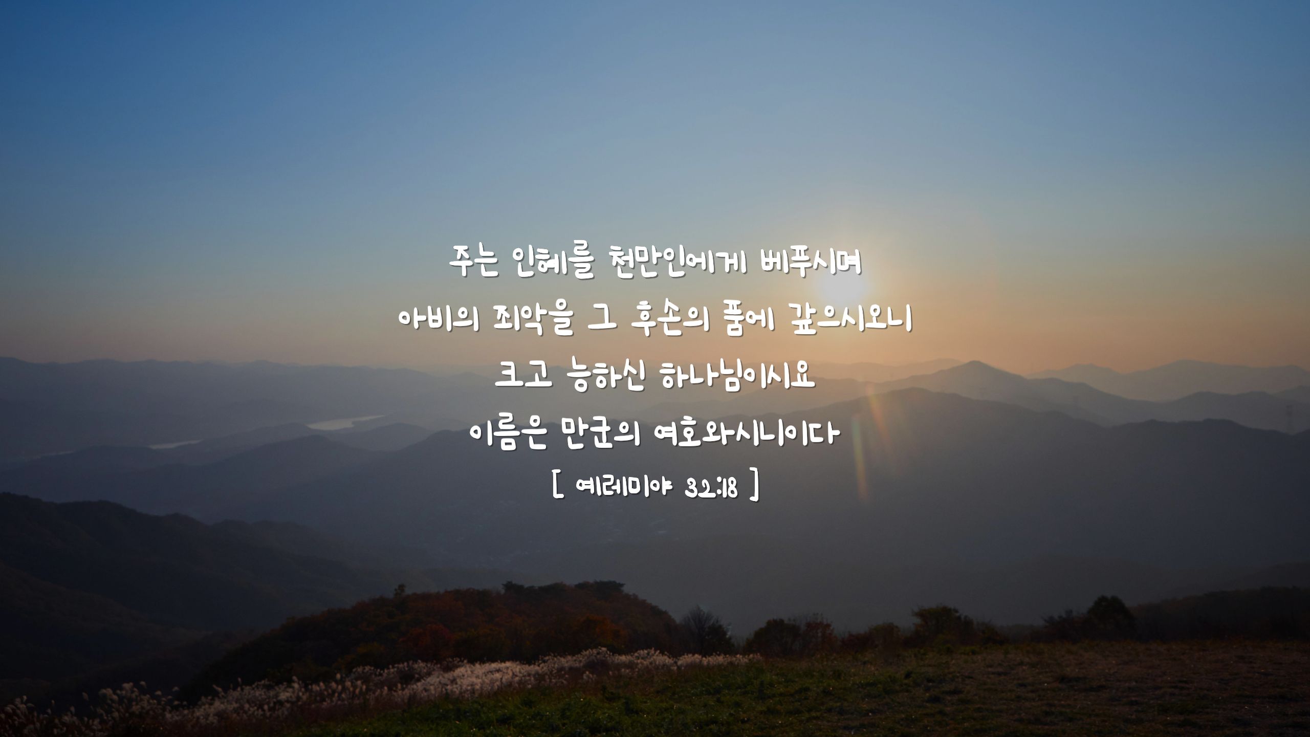 '주께서는 수천의 사람들에게 인자하심을 베푸시며 아버지들의 불법을 그들 뒤에 오는 그들의 자손들 품에 갚으시니 위대하신 분, 강력하신 하나님, 군대들의 주가 그분의 이름이니이다'