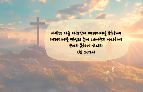 그러나 하나님은 요시야 왕 시대에 서기관으로 지낸 사반의 아들이요, 믿음의 사람 아히감을 시켜 예레미야의 생명을 보호하여 줍니다.