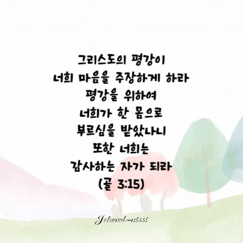 그리스도의 평강이 너희 마음을 주장하게 하라 평강을 위하여 너희가 한 몸으로 부르심을 받았나니 또한 너희는 감사하는 자가 되라 (골 3:15)