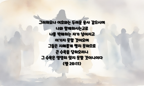 그러하오나 여호와는 두려운 용사 같으시며 나와 함께하시는고로 나를 박해하는 자가 넘어지고 이기지 못할 것이오며 그들은 지혜롭게 행치 못하므로 큰 수욕을 당하오리니 그 수욕은 영영히 잊지 못할 것이니이다 (렘 20:11)
