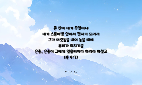 큰 산 앞에서, 절망의 산 앞에서 내가 할 수 있는 일이 하나도 없다고 할 때, 주님은 내가 너의 울타리가 되고 큰 산을 허물어 버릴 새 역사를 준비하고 있다고 말씀하십니다.